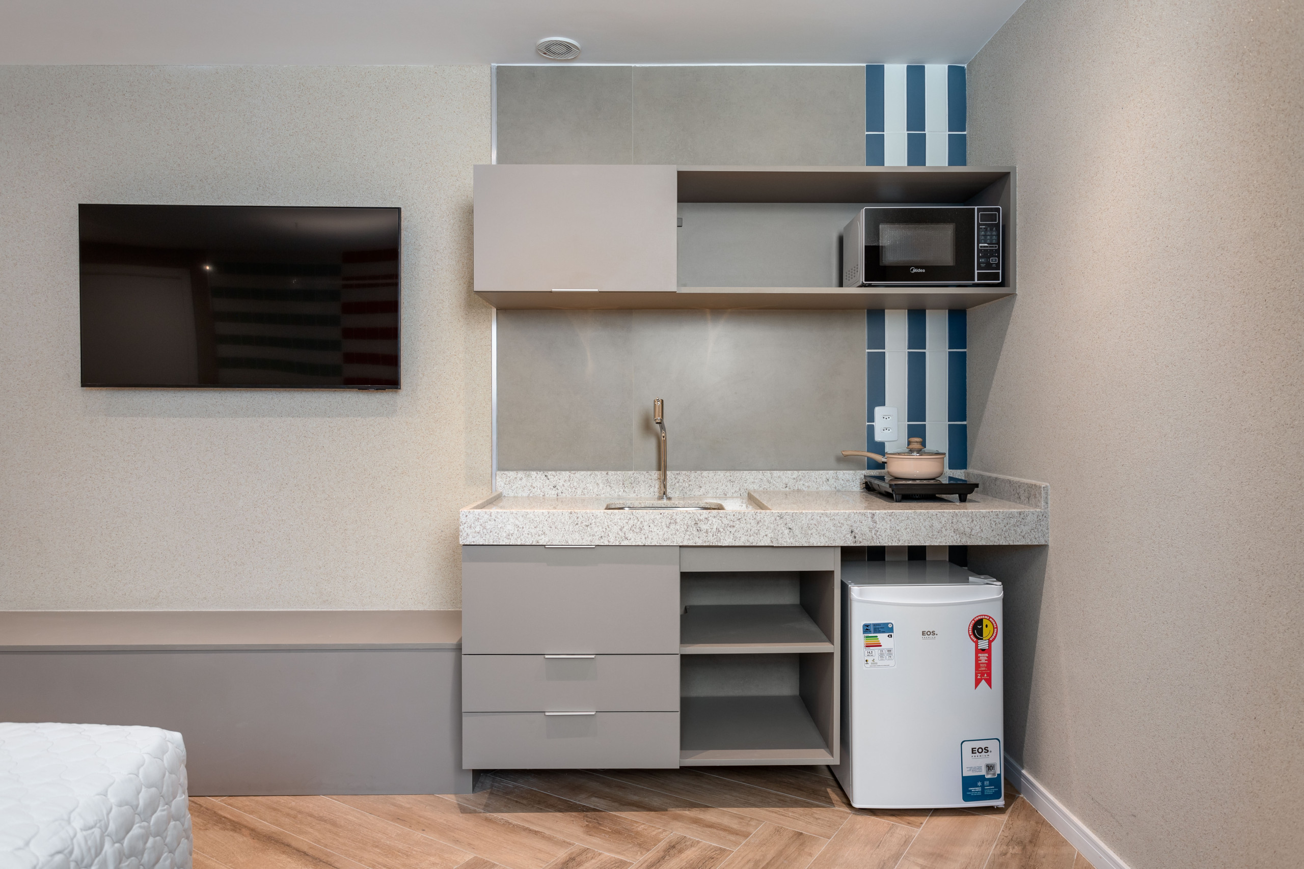 The space still offers amenities that go beyond expectations, including a coworking area, ideal for those who need to reconcile leisure and work, and a practical smart supermarket, ensuring quick access to essential items without leaving the condominium. For your convenience, there is also a 1-volume luggage room and a changing room, with shower and toilet, both available free of charge to guests, in addition to 24-hour reception. Everything was designed to provide you with a stay with maximum comfort, practicality, and convenience.