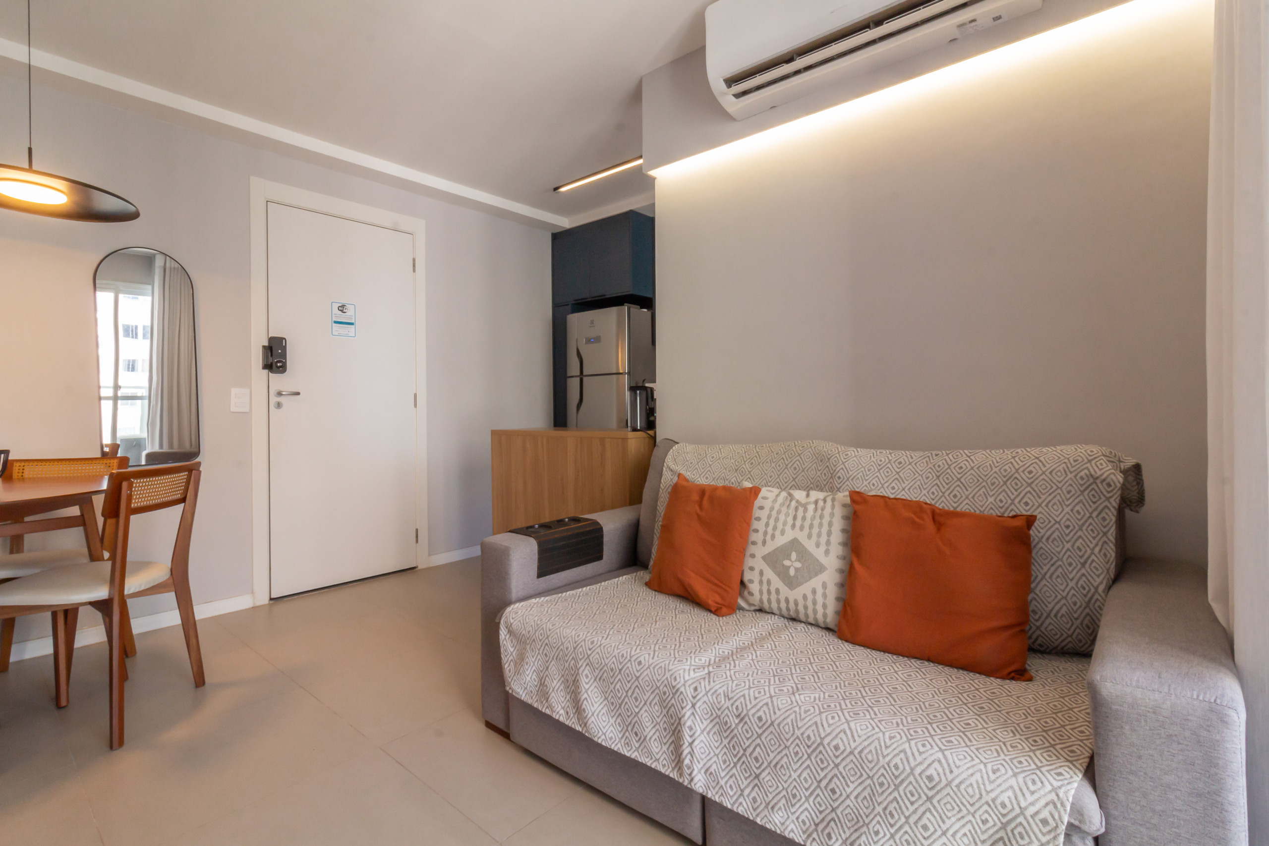 The space still offers amenities that go beyond expectations, including a coworking area, ideal for those who need to reconcile leisure and work, and a practical smart supermarket, ensuring quick access to essential items without leaving the condominium. For your convenience, there is also a 1-volume luggage room and a changing room, with shower and toilet, both available free of charge to guests, in addition to 24-hour reception. Everything was designed to provide you with a stay with maximum comfort, practicality, and convenience.