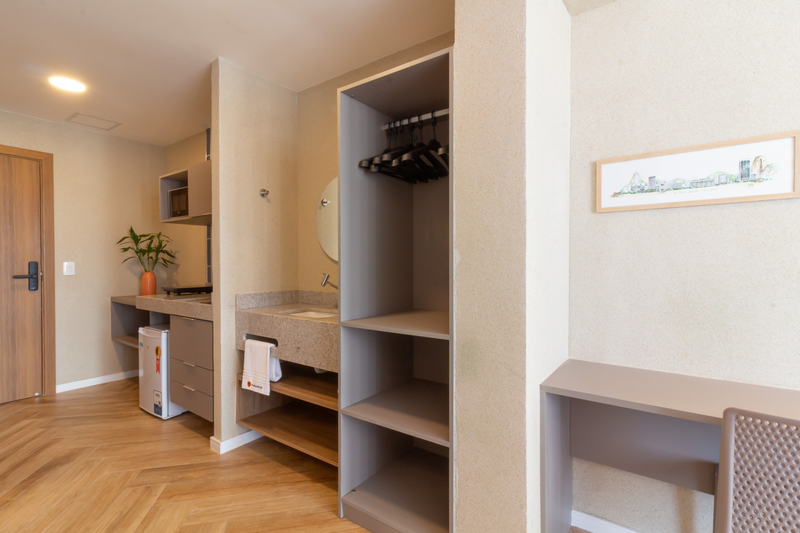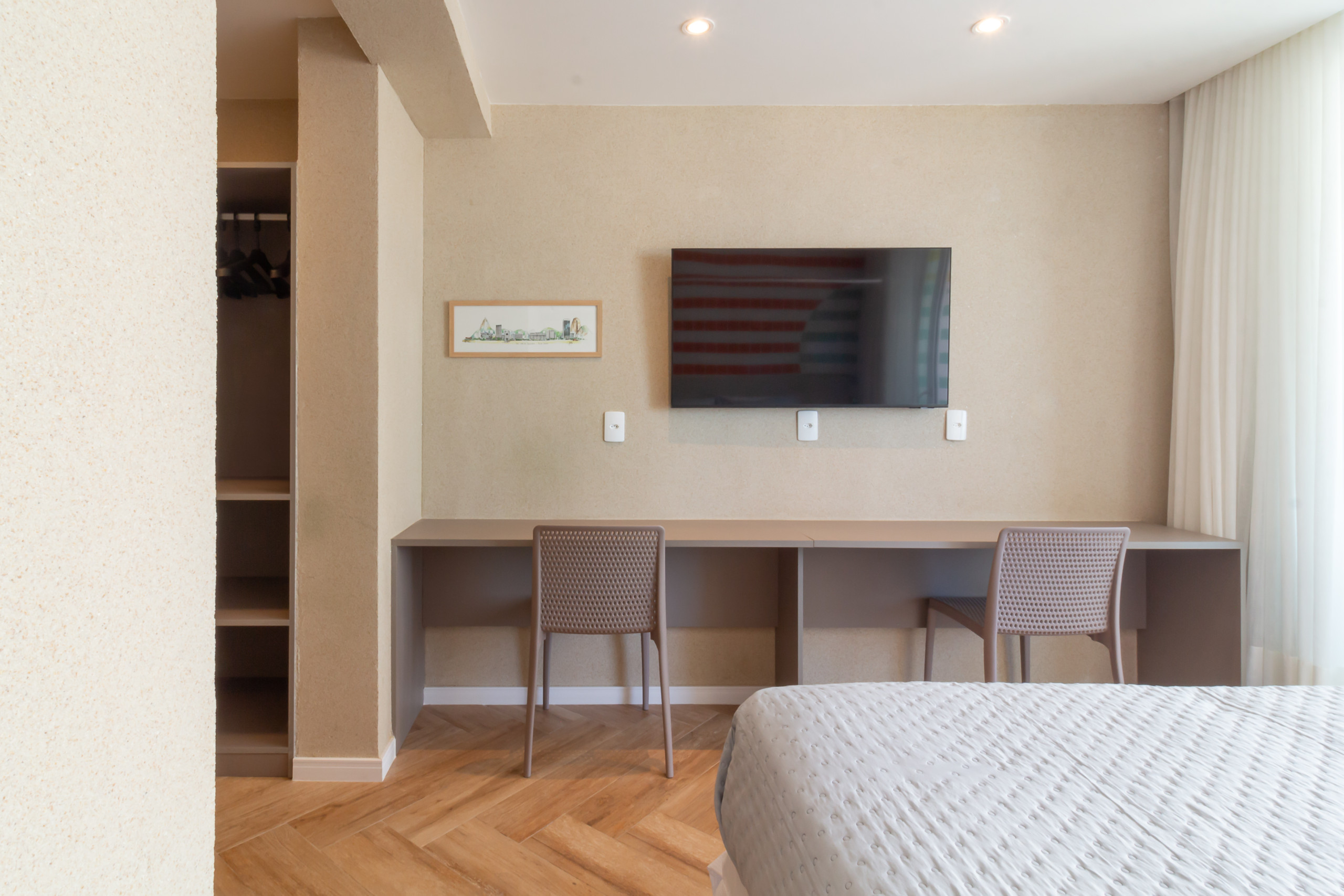 The space still offers amenities that go beyond expectations, including a coworking area, ideal for those who need to reconcile leisure and work, and a practical smart supermarket, ensuring quick access to essential items without leaving the condominium. For your convenience, there is also a 1-volume luggage room and a changing room, with shower and toilet, both available free of charge to guests, in addition to 24-hour reception. Everything was designed to provide you with a stay with maximum comfort, practicality, and convenience.