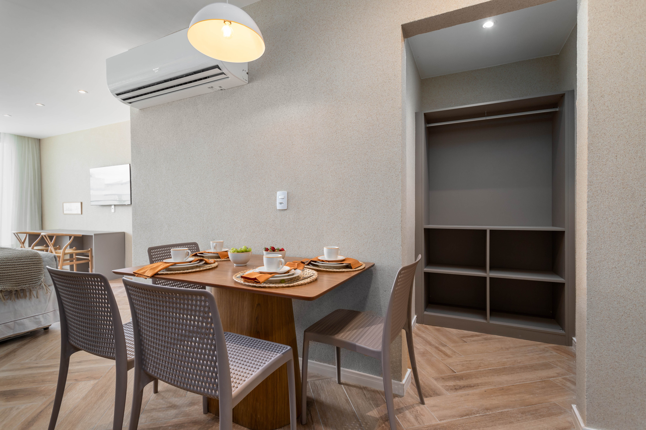 The space still offers amenities that go beyond expectations, including a coworking area, ideal for those who need to reconcile leisure and work, and a practical smart supermarket, ensuring quick access to essential items without leaving the condominium. For your convenience, there is also a 1-volume luggage room and a changing room, with shower and toilet, both available free of charge to guests, in addition to 24-hour reception. Everything was designed to provide you with a stay with maximum comfort, practicality, and convenience.