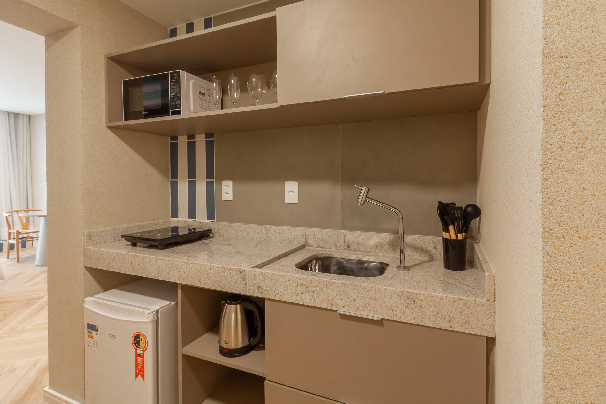 El espacio aún ofrece comodidades que van más allá de lo esperado, incluyendo un área de coworking, ideal para quienes necesitan conciliar ocio y trabajo, y un práctico mercadito inteligente, garantizando un acceso rápido a artículos esenciales sin salir del condominio. Para su conveniencia, hay también un guardarropa de 1 volumen y un vestuario, con ducha y sanitario, ambos disponibles gratuitamente para los huéspedes, además de recepción 24 horas. Todo fue pensado para proporcionarle una estancia con el máximo de comodidad, practicidad y conveniencia.